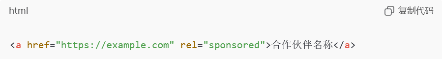 2. 标注付费属性:广告/赞助/互惠链接用 rel="sponsored";不做背书的用 rel="nofollow"